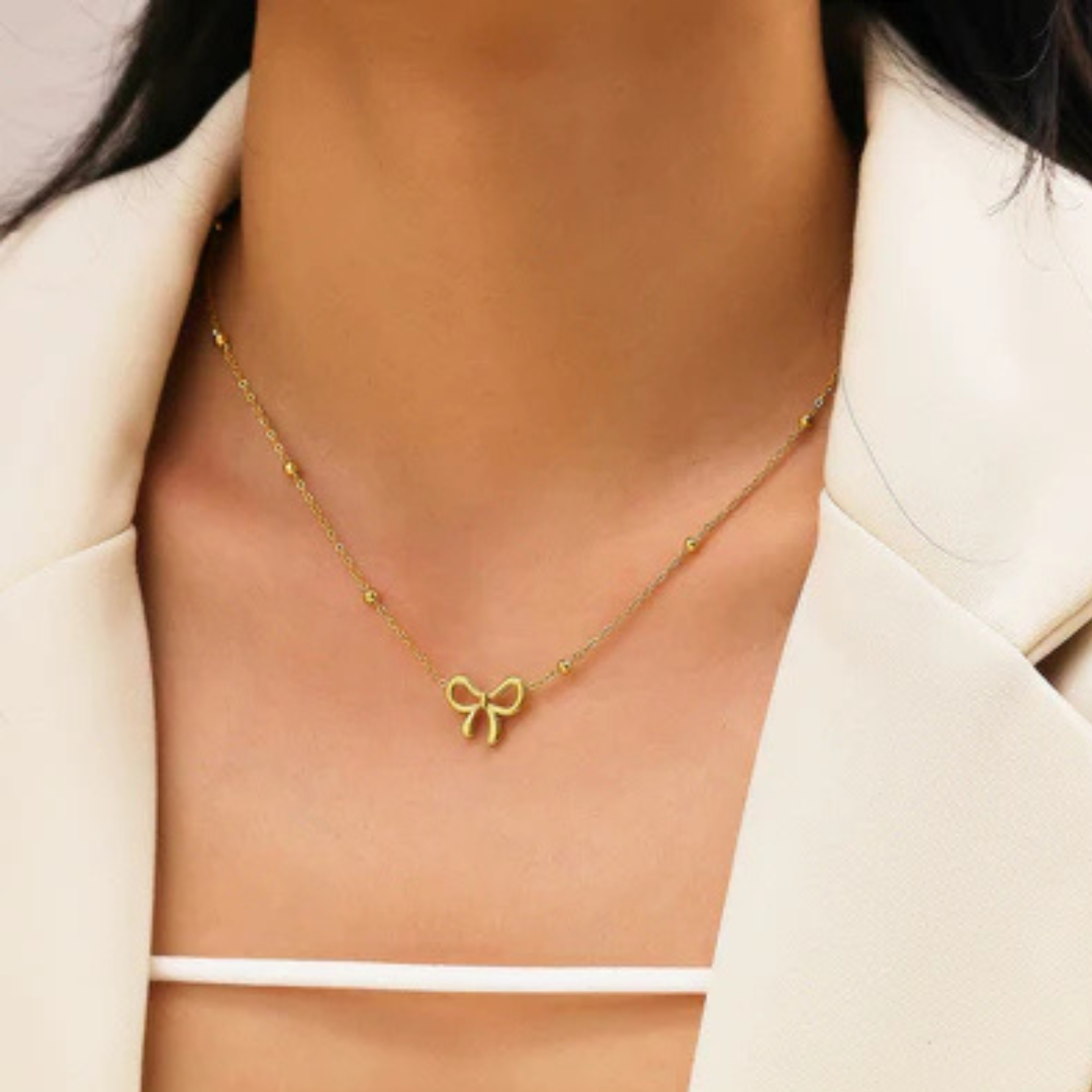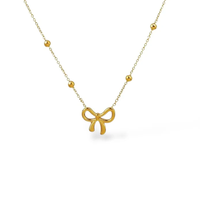 Delicate yet stylish, the Bow Pendant Necklace features a charming bow design finished in luxurious 18K gold plating. A timeless piece that adds feminine elegance and effortless sparkle to everyday and special occasion looks.
