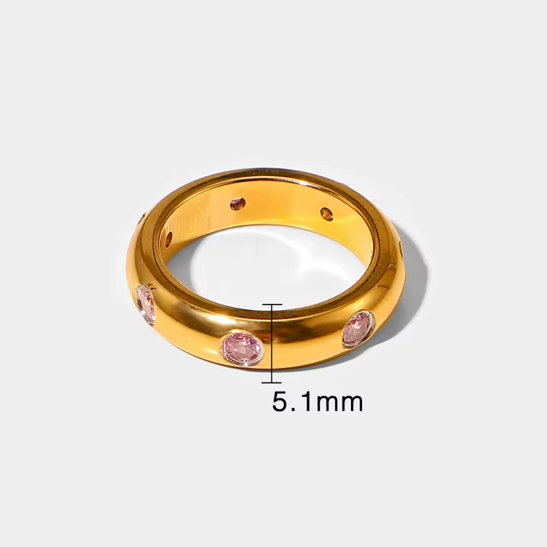 Gold Embedded Zirconium Ring Band - 18k Gold Plated