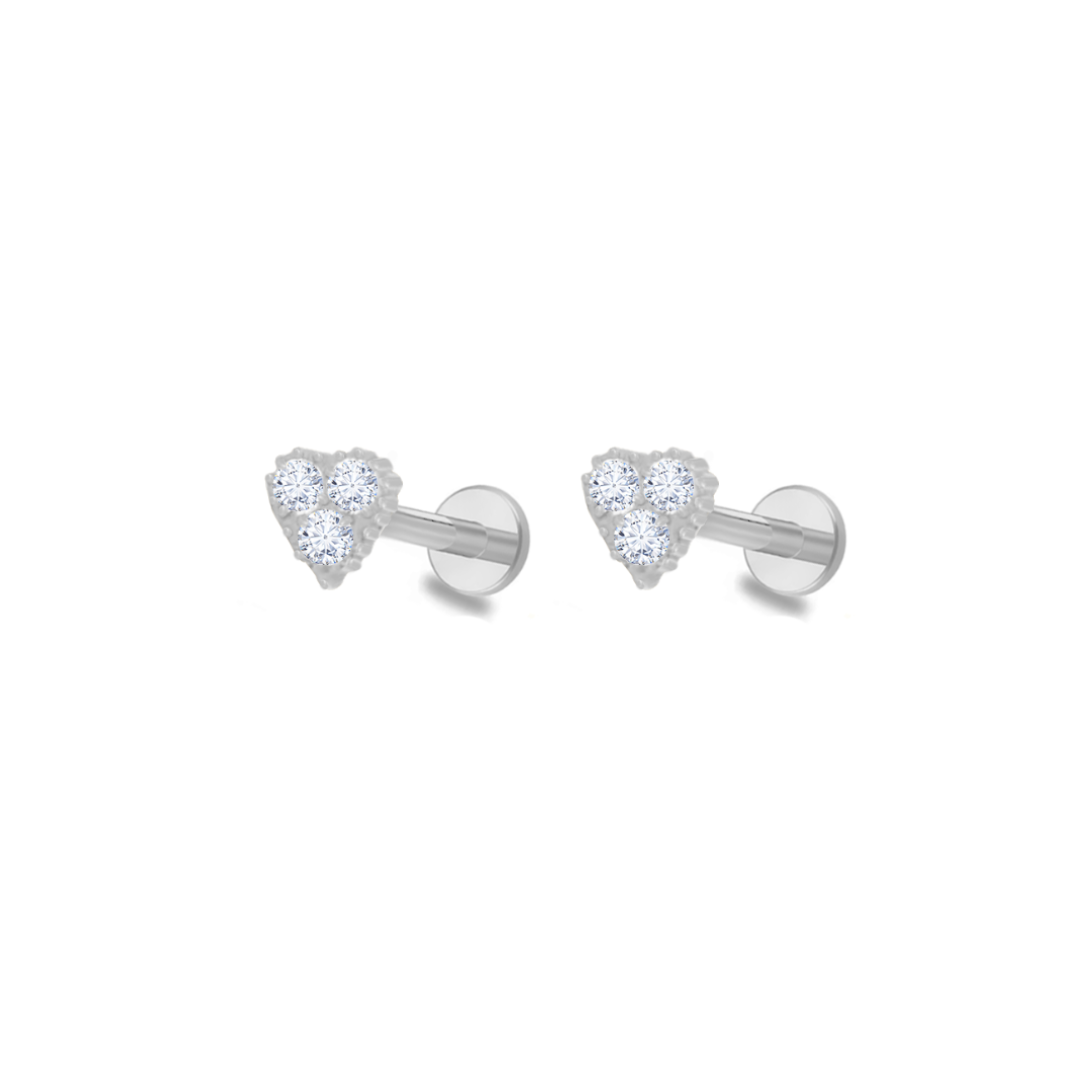 Heart Zirconium Labret Titanium Stud S925 – Secure Internal Thread Flat Back Design