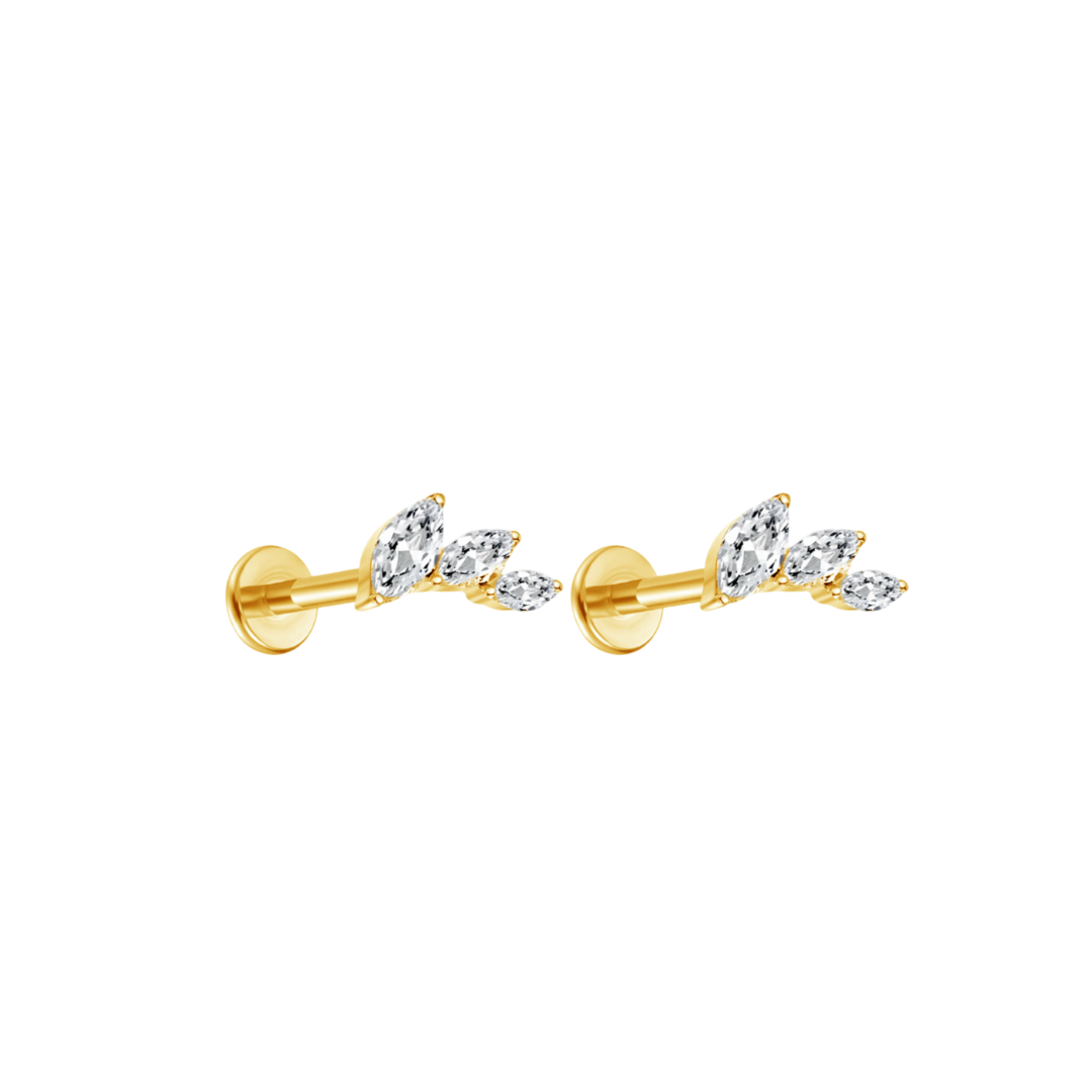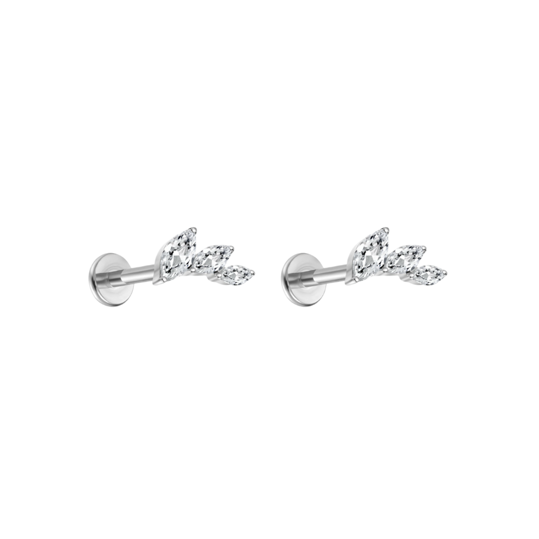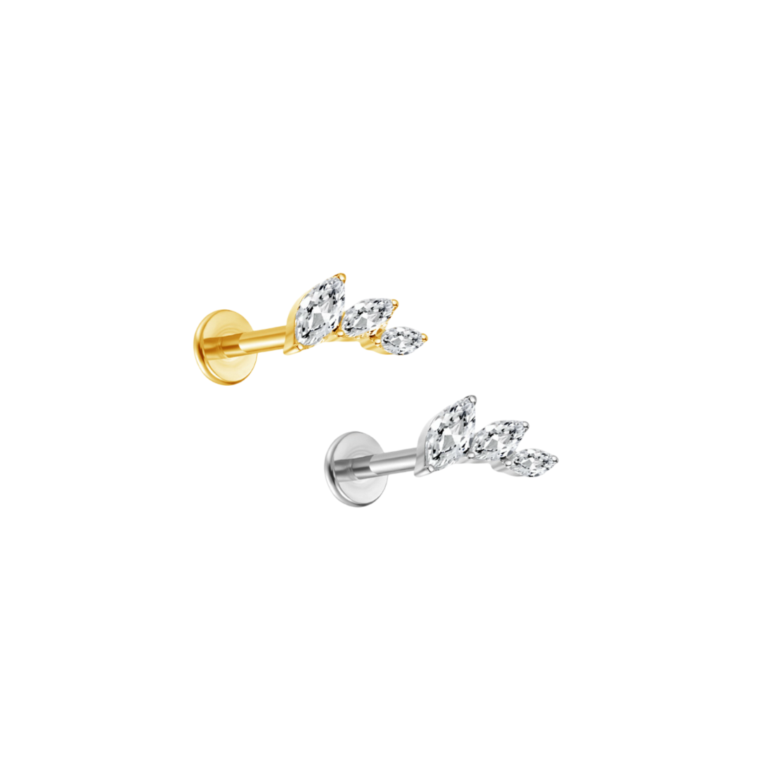 Marquise Cut Leaf Zirconium Labret Titanium Stud S925 – Secure Internal Thread Flat Back Design