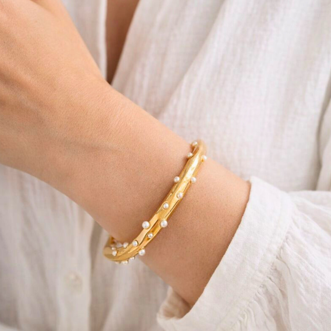 Timeless and graceful, the Mother of Pearl Bracelet is beautifully crafted with a luminous 18K gold plated finish. Featuring a soft iridescent glow, premium craftsmanship, and a waterproof, tarnish-free design, it embodies understated luxury and everyday elegance.