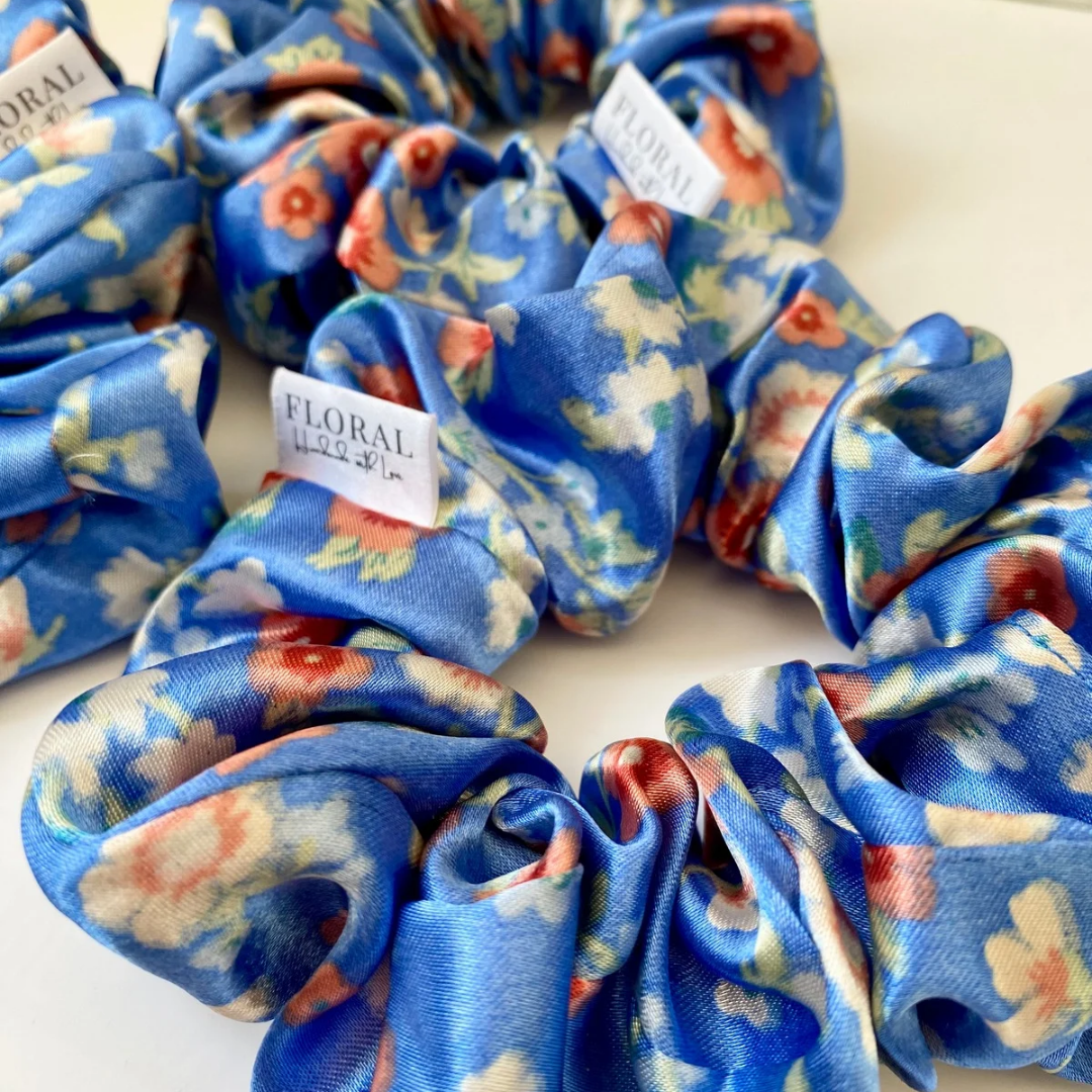 Printed Blue Scrunchie
